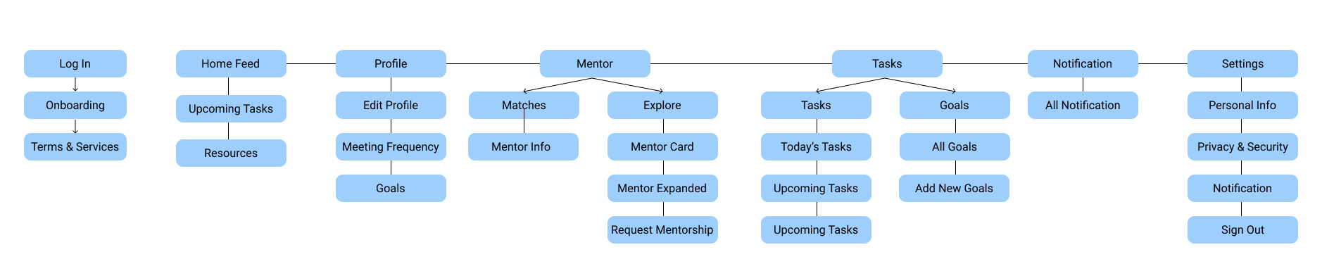 We first visualized what the app would look like and the general user flow to help clarify the pages that we would start designing low-fidelity pages on.